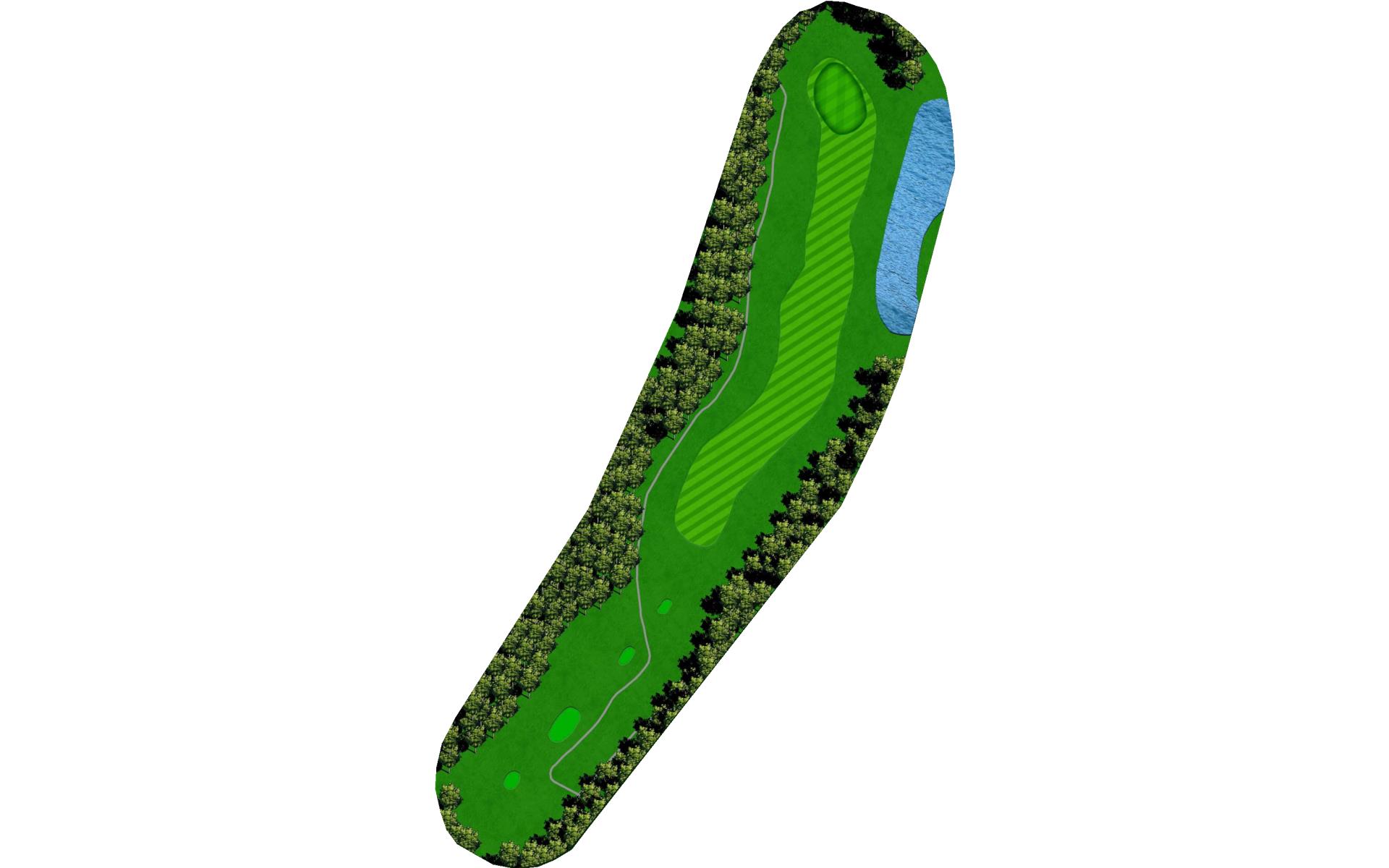 A straight away par 4 with a wetland area 250 yards off the tee requiring long hitters to lay-up off the tee. A large lake on the entire right side of this hole comes into play. A large green with many challenging hole locations.