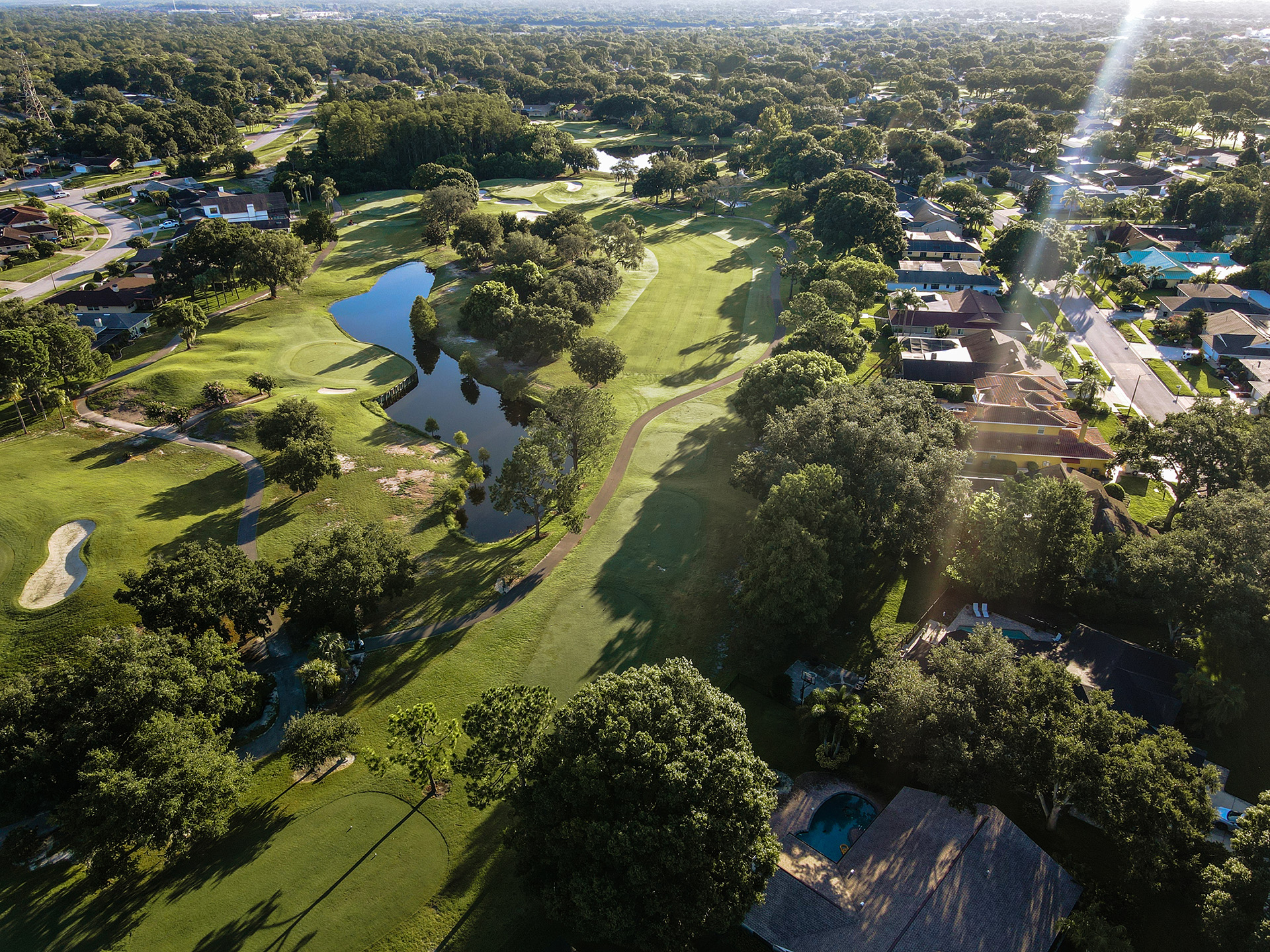 Great Par 3 - Signature Hole for the Bayhead Course. Half island green so don't miss left. Right is safe